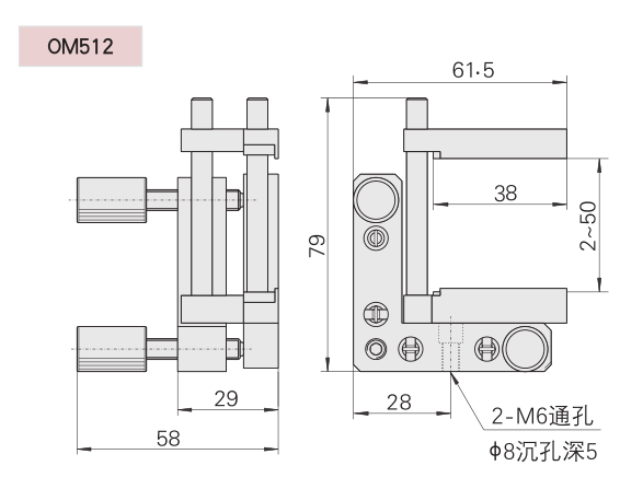 可夾持不同高度的方鏡片和柱面透鏡 兩維調整 M6×0.25 細牙螺桿調節