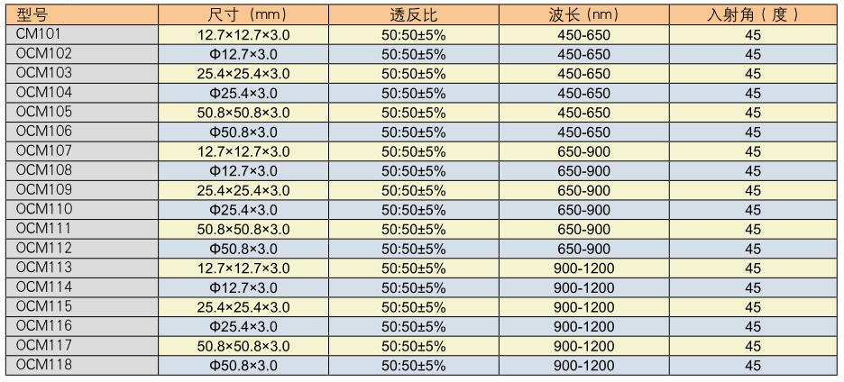 OCM100系列部分反射鏡